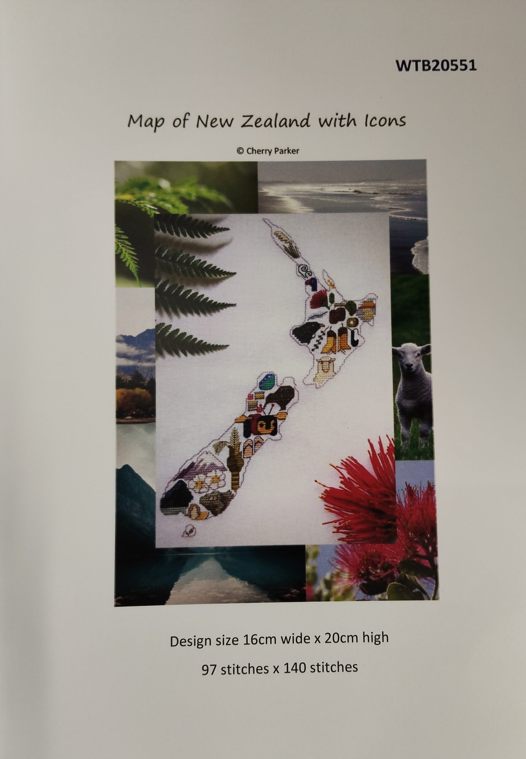 The map includes toi toi grass, the koru, pukeko, pohutukawa flower, gold nugget, silver fern, kiwifruit, the dawn of the new day, greenstone, the tui, kowhai flower, sheep. manuka flower and honey, paua shell, Buzzy Bee, a pair of jandals, the Nikau palm, Mt Cook and the Mt Cook lily, Milford Sound, the tuatara, oysters and flax. Or stitch some of the icons as small quick finishes, perfect for your ATC swap!