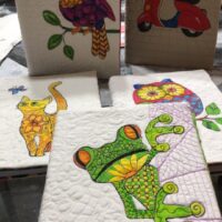 Come and create a work of art from our scrap bins, using decoupage techniques on fabrics. An extremely popular class.