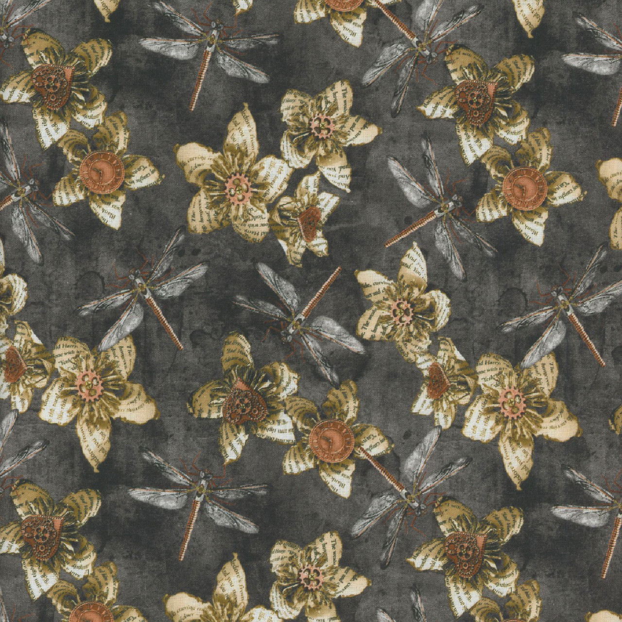 Full Steam Ahead – Flowers with Dragonflies – Charcoal by Blank Quilting