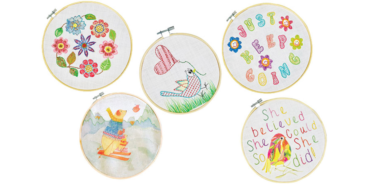 | Pattern | Bears Skiing, Bird/Heart, Flowers, Just Keep Going, She Believed |