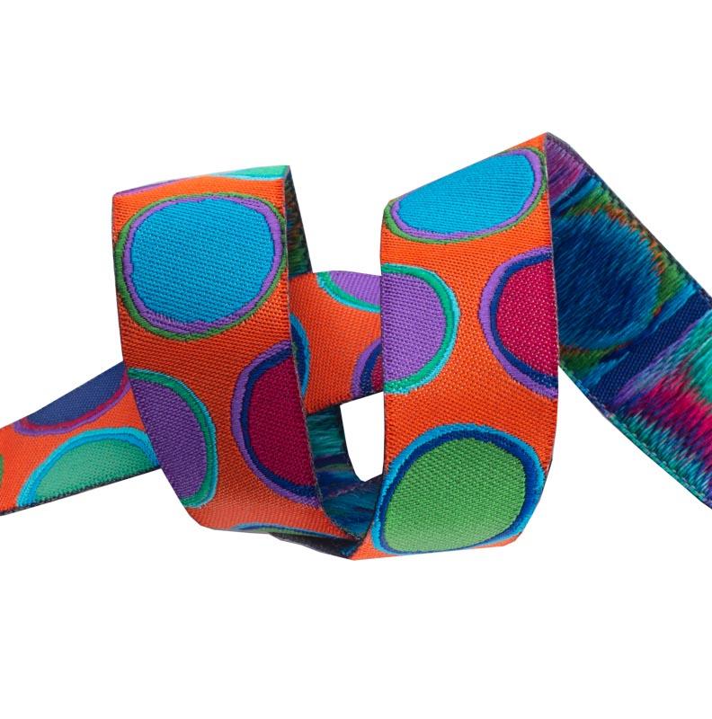 Cute mini woven ribbon with charming flowerets in pink and yellow on hot pink- Ribbon design by Kaff...