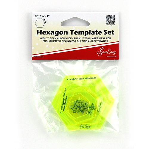 Hexagon template set with 1/4″ seam allowance. Pre cut templates ideal for English paper piecing, quilting and patchwork.