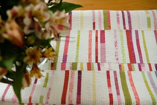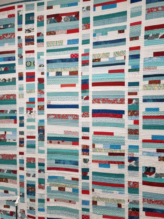 This is a stash buster, so bring your scrap bags. We can use pieces as small as one inch square. Together we’ll build stripey panels you can use to create any size quilt you like.